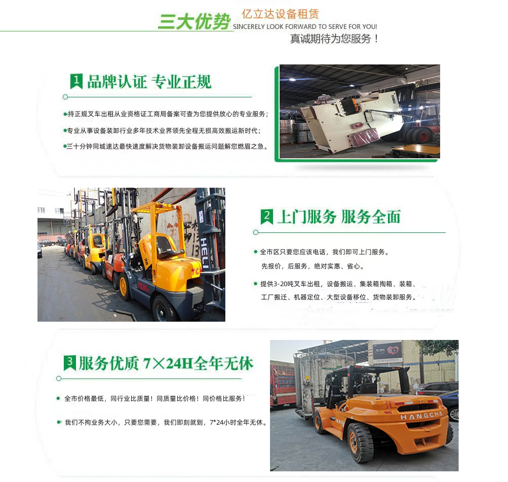 - 福州长乐区作为福州航空枢纽与物流重镇,叉车使用场景主要集中在长乐国际机场货运区、物流园(如长乐国际物流园、松下物流园)、临港工业,作业需求呈现“24小时不间断、应急性强、作业地点集中”的特点,用户最核心的需求是“24小时上门服务、快速响应、设备适配机场/物流园作业规范”,很多用户担心夜间作业无响应、设备无